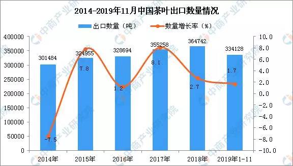 2019年1-11月中國茶葉出口量同比增長1.7%